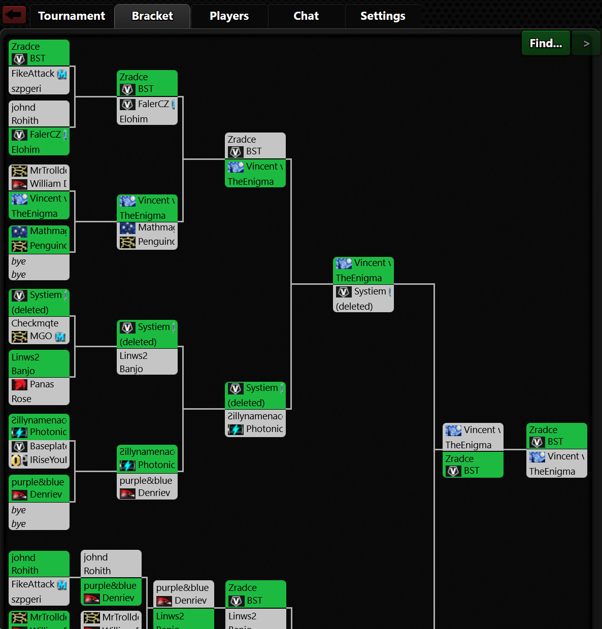 - For web users, you now have access to the “find” button which makes it easy to find a specific player and track their progress through the tournament.