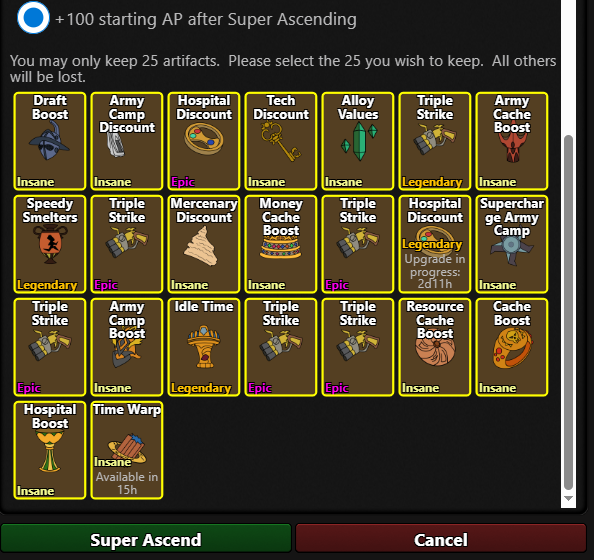 I have super ascended for the first time! +25% AP, Legendary Alloy Values, Insane Army Cache Boost